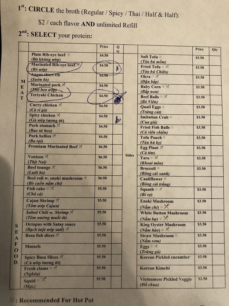 Hot Pot City is a gem in Westminster, CA, offering a unique dining experience with a blend of hot pot and barbecue options. Customers rave about the delicious food and quick service in a calming atmosphere. The menu features a variety of meats, seafood, vegetables, and sauces for customization. With options like regular, spicy, and Thai broths, along with a grill surrounding the pot, the dining experience is truly interactive. While the cleanliness may be a concern due to the grill, the flavors and marination of the dishes compensate for it. The affordability and range of choices make Hot Pot City a go-to spot for satisfying hot pot cravings without the hassle of long waits. Whether for a date night or family hangout, this casual eatery with Wi-Fi and happy hour options provides a comfortable setting for a memorable dining experience.